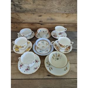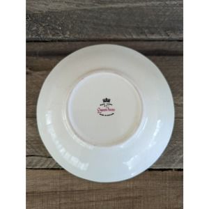 This bone china teacup and saucer is made in England.