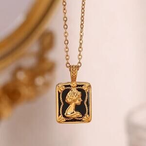 18K Gold plated Stainless Steel Vintage Queen Pendant Necklace.