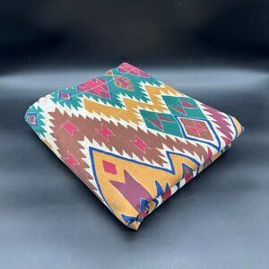 Vintage Queen Flat Sheet 1990s Southwestern Aztec Thomaston USA Western Bedding