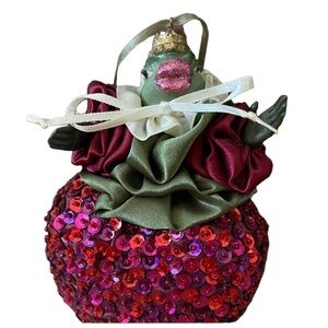 Vintage Queen Frog Red Sequined Christmas Tree Ornament. Measures Approximately 6.5" H x 4" W. Preowned Good Condition. Any questions please ask. Thanks for looking.
