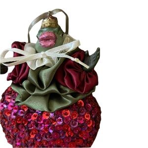 Vintage Queen Frog Red Sequined Christmas Tree Ornament