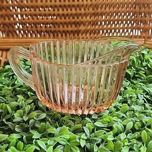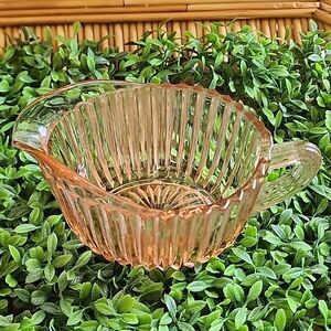 Beautiful pale peachy pink depression Glassware creamer/pitcher with ribbed handle