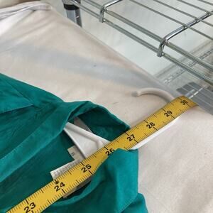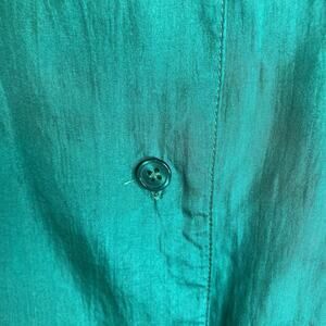 Vintage Queenie Womens Green Silk Short Sleeve Button Up Shirt Size S Secretary
