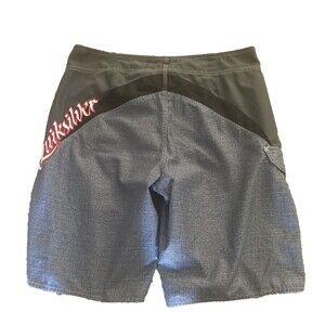 Vintage Quicksilver Board Shorts 34 Grey Swim Trunks Surf Skater Spellout Y2K