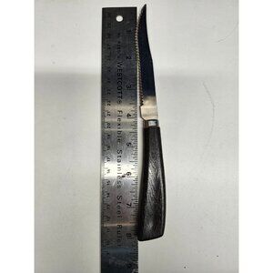 Vintage Quikut 8" Serrated Blade Steak Knife Faux Wood