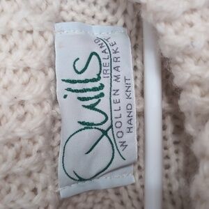 Vintage Quills Bone White Irish Woolen Handknit Fisherman Sweater Cardigan XXL