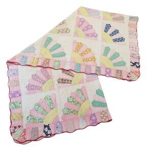 Vintage Quilt 1930s Fan Motif Handsewn w/20s-30s Cotton Fabrics