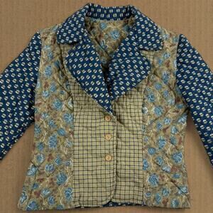 Vintage Quilt 70s Handmade Hippie Patchwork Prairie Button Jacket Fits like XS