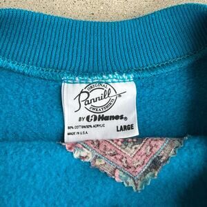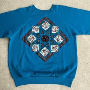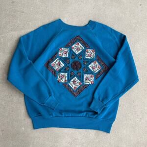Vintage Quilt Block Handmade Blue Grandma Crewneck Sweatshirt Fits like Medium