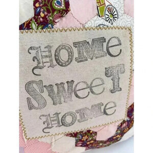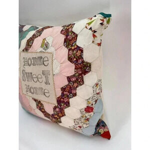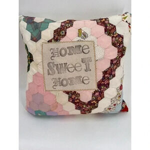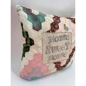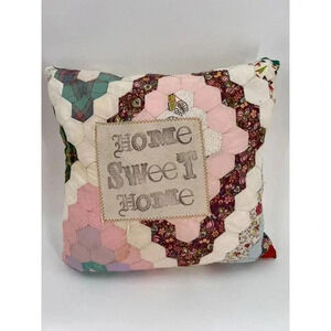 Vintage Quilted Accent Pillow "Home Sweet Home" Decorative Patchwork Square