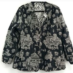 Vintage Quilted Art to Wear Unique Scenic Reversible 2-Sided Black&Silver Jacket
