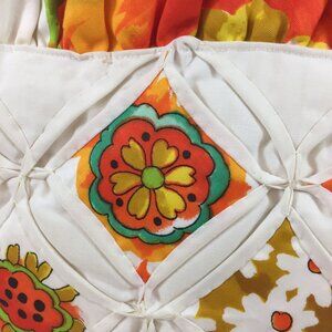 Vintage Quilted Cathedral Window Sofa Pillow Orange Teal White Floral Ruffle 13"