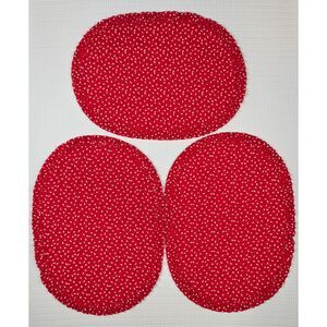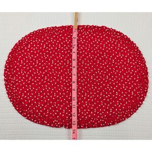 Vintage Quilted Christmas Tree Placemats Ruffled Edge Oval Set of 3 Red White