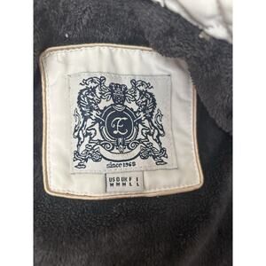 Crafted with care, the jacket features a flannel fabric type that provides both warmth and comfort. The polyester outer shell and lining ensure durability and ease of care, while the polyamide insulation keeps you cozy during the cooler seasons. With a mix of zip and snap closures, along with a hooded design, this piece is not only stylish but also functional, suitable for casual outings, travel, or even adding a sophisticated edge to your workwear wardrobe. A tiny bit of fry on the collar see picture.