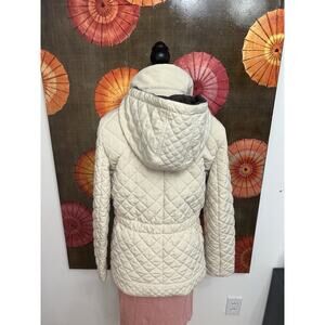 Vintage Quilted Cream Esprit Hooded Jacket Preppy Minimalist Classic Chic Sz M