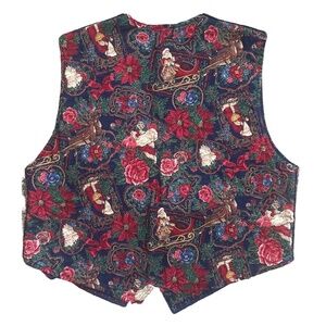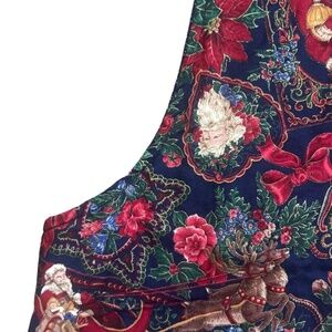 Vintage Quilted Custom Santa and Poinsettia Cotton holiday vest - M/L