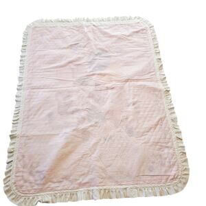 Vintage Quilted Embroidered Kitschy Baby Blanket 42x33" Pastels Bunnies Cottage
