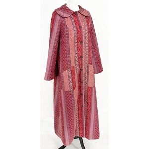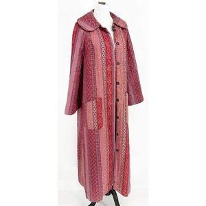 Vintage Quilted Maxi Coat Red Pink Burgundy Collared Retro Boho Bohemian 70s
