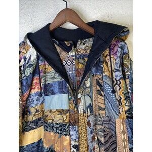 Beautiful quilted thick winter reversible Shacket hoodie jacket with many patterns. Bali SRI rahayu is on the tag. No size.