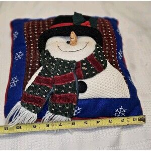 Vintage Quilted Snowman Throw Pillow Crochet Outfit Christmas Decor Let It Snow