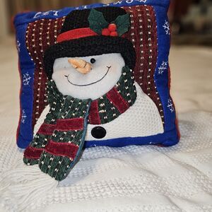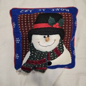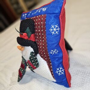 Vintage Quilted Snowman Throw Pillow Crochet Outfit Christmas Decor Let It Snow