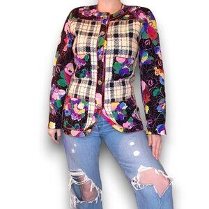 Vintage Quilted Ungaro Silk Blend Floral and Tweed Blazer Jacket