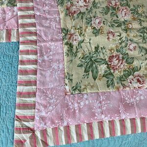 Vintage Quilted large Pillow shams roses pink w/ striped boarder 20"x 36"