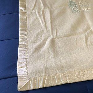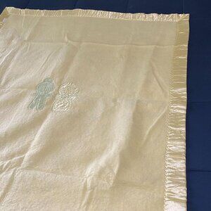 Vintage Quiltex Baby Blanket Satin Binding Trim Yellow Embroidered Figures