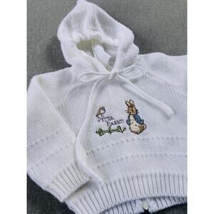 Vintage Quiltex Baby Hooded Sweater 0-6 Mo Peter Rabbit Ivory Beatrix Potter