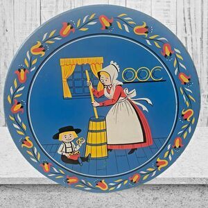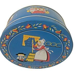 Vintage Quinlan’s Amish Dutch Round Tin Pennsylvania Blue Farm Butter Pretzel