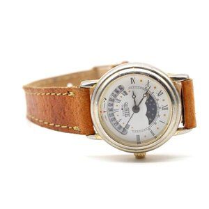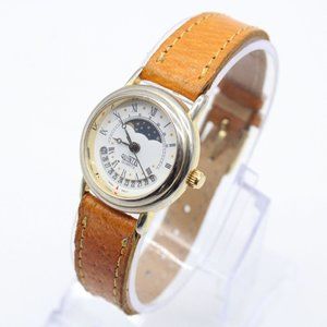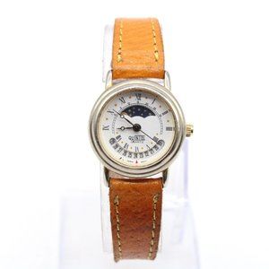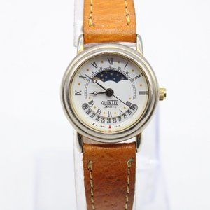 Vintage Quintel Watch Womens Gold Tone Stainless Steel Moonphase Date Dial Y2K