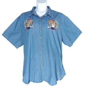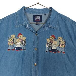 Vintage Quizz NY Woman Chambray Teddy Bears Embroidered Shirt Size 24 Blue