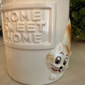 Cat Mouse Mug 1980 Home Sweet Home Ceramic Quon Quon Japan 3-D Raised Design