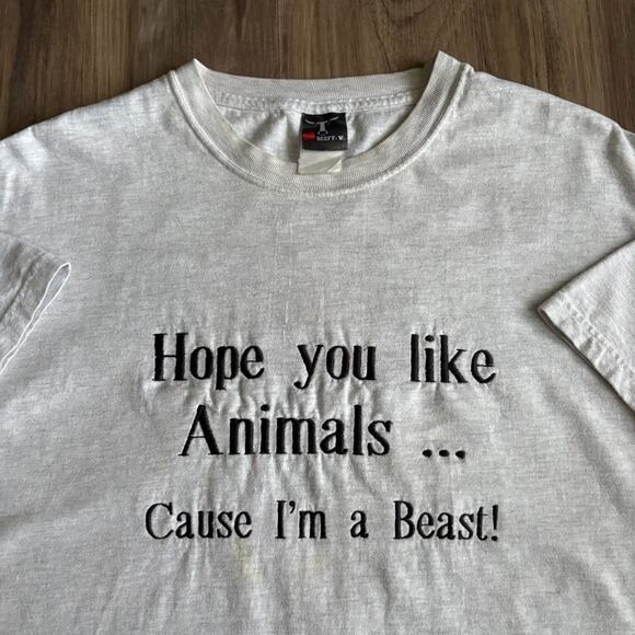 Vintage Quote T-Shirt Funny Size L Gray Hope You Like Animals Gray WORN