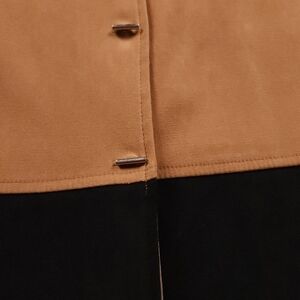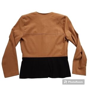 Vintage R & K Originals sz 10P Button Up Blazer Jacket. Tan and black soft feeling fabric, metal buttons, shoulder pads. Flat measurements approximately