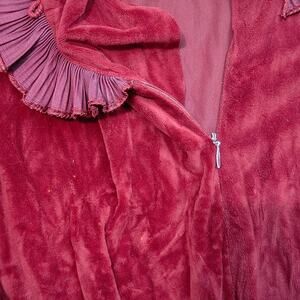 Vintage R. Michael Alan Deep Red Ruffle Trim House Coat Robe Womens Medium