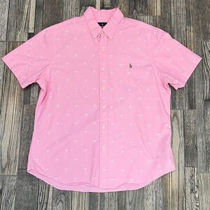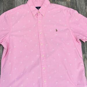 🏝️☀️ Vintage RALPH LAUREN Embroidered Hawaiian Nautical Pink SS Button Down Shirt