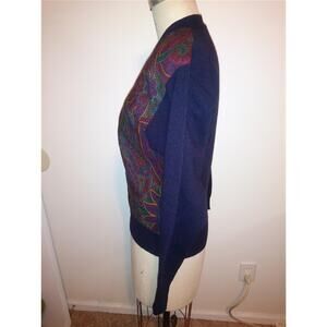 Navy Blue 100% Wool & Paisley Print Cardigan Sweater