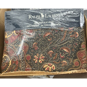 Vintage RALPH LAUREN TWIN Flat Sheet Whitbury Paisley Black Red Brown Combed