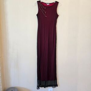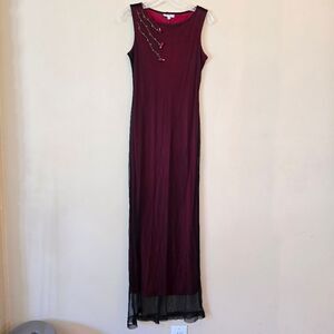 Vintage RAMPAGE Women's Maxi Dress Red- Black Mesh Overlay/ 3D Size Small Y2K