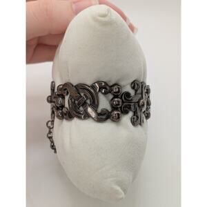 Vintage RARE 980 Silver HEAVY Wide Taxco Maximiliano Mondragon Bracelet! 7" Signed MM. One side of the safety chain is attached by thread as pictured. Very good vintage condition!