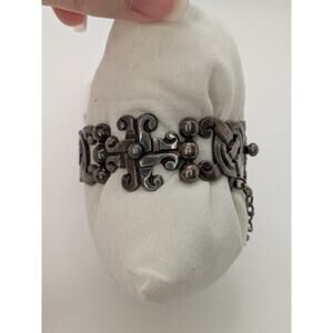 Vintage RARE 980 Silver HEAVY Wide Taxco Maximiliano Mondragon Bracelet! 7"
