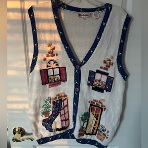 Vintage RARE Bechamel Hand Knit Garden Flowers Windows Sweater Vest