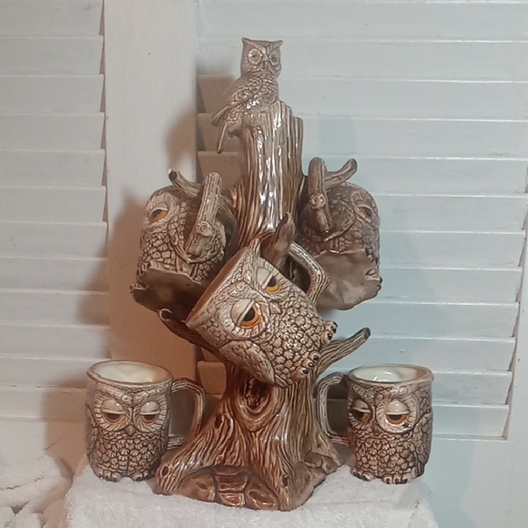 Vintage RARE Ceramic Cup Owl Tree