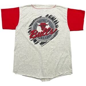 Vintage RARE Chicago Bulls Two Tone Baseball Jersey - Button Front - L
