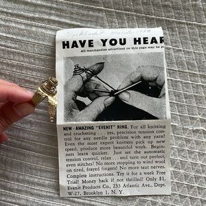 Tags: vintage, rare, sewing, knitting, crocheting, grandmacore, ring, brass, Evenit, tension, precision, yarn, tools, notions