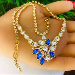 Vintage RARE MONET Blue Clear Rhinestone ls Jeweled Necklace BEAUTIFUL 4341
