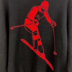 Vintage 90s RARE Polo by Ralph Lauren Black Turtleneck Sweater Red Downhill Suicide Skier Slalom Ski