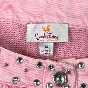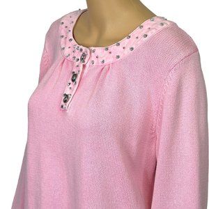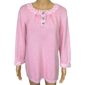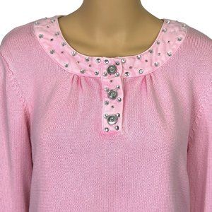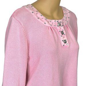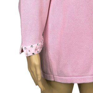 Vintage RARE Quacker Factory Womens M Pink Sweater Shirt Rhinestones & Beaded
