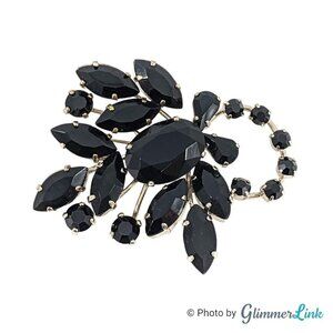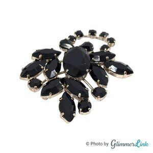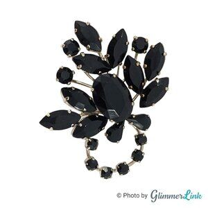 Vintage Western Germany black and silver tone brooch accented with black rhinestone crystals arranged in a floral spray design.